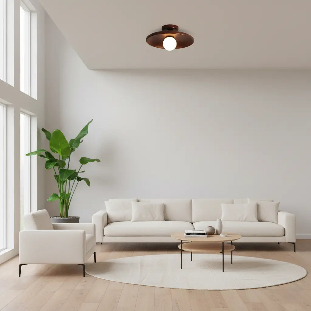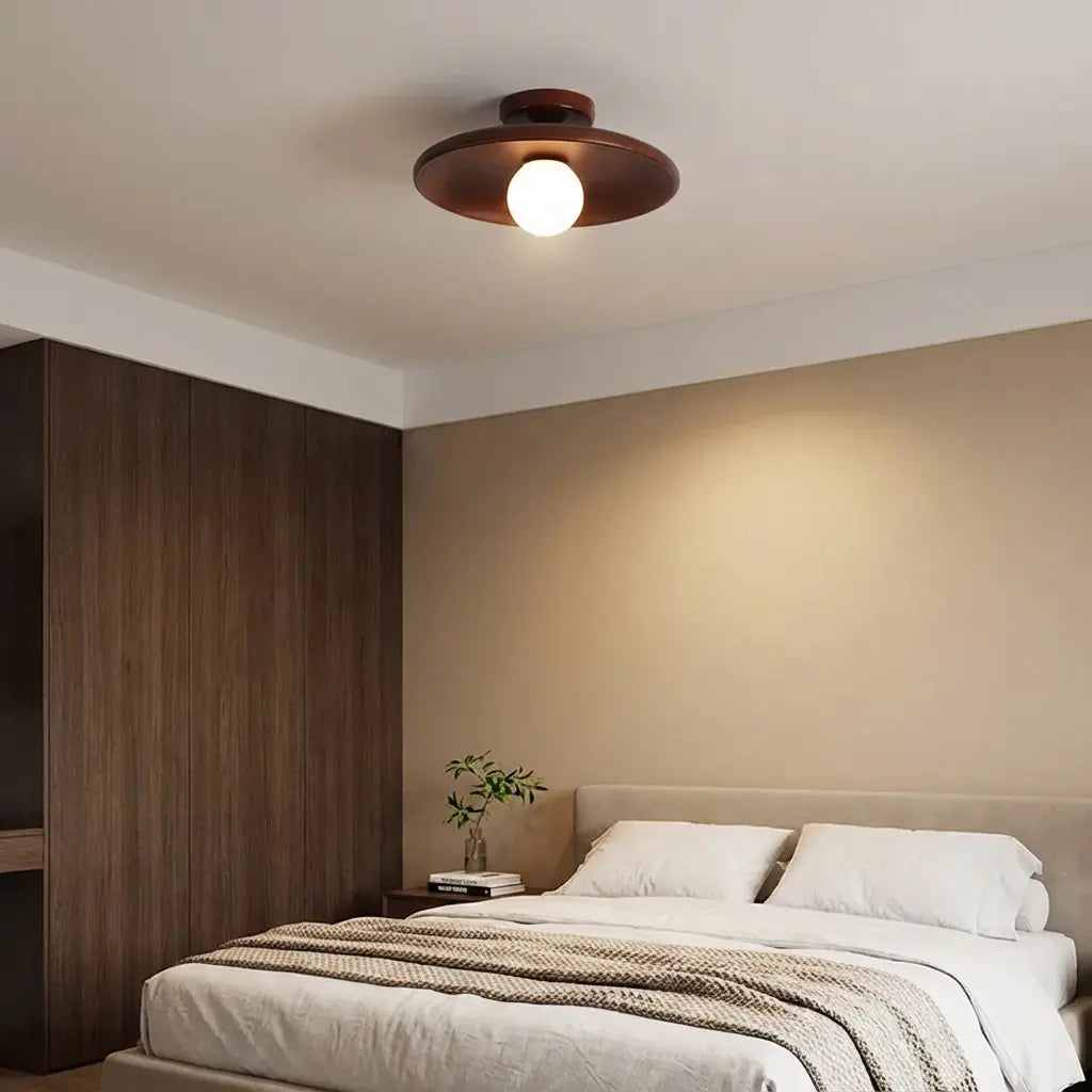 Plafondlamp van hout met bol – een perfecte mix van natuur en moderniteit.