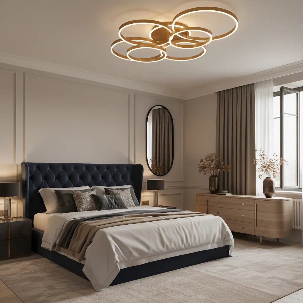 Breng de sfeer van modern design naar je interieur met onze moderne plafondlamp. De plafondlamp is verkrijgbaar in het zwart en goud. Voeg een vleugje moderniteit toe aan je huis met deze lamp.