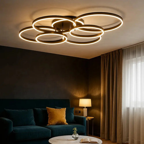 Dat hangt af van de grootte van je woonkamer en de gewenste sfeer. Voor een ruimte tot 15m² volstaat meestal een plafondlamp met 3 tot 4 lichtpunten. Heb je een grotere woonkamer? Dan kun je beter kiezen voor een lamp met meer lichtpunten of een groter model. Let ook op de lichtkleur: warm wit geeft een gezellige sfeer, terwijl neutraal wit helderder en frisser oogt. Kies een stijl die aansluit bij je interieur, bijvoorbeeld modern zwart of tijdloos grijs.