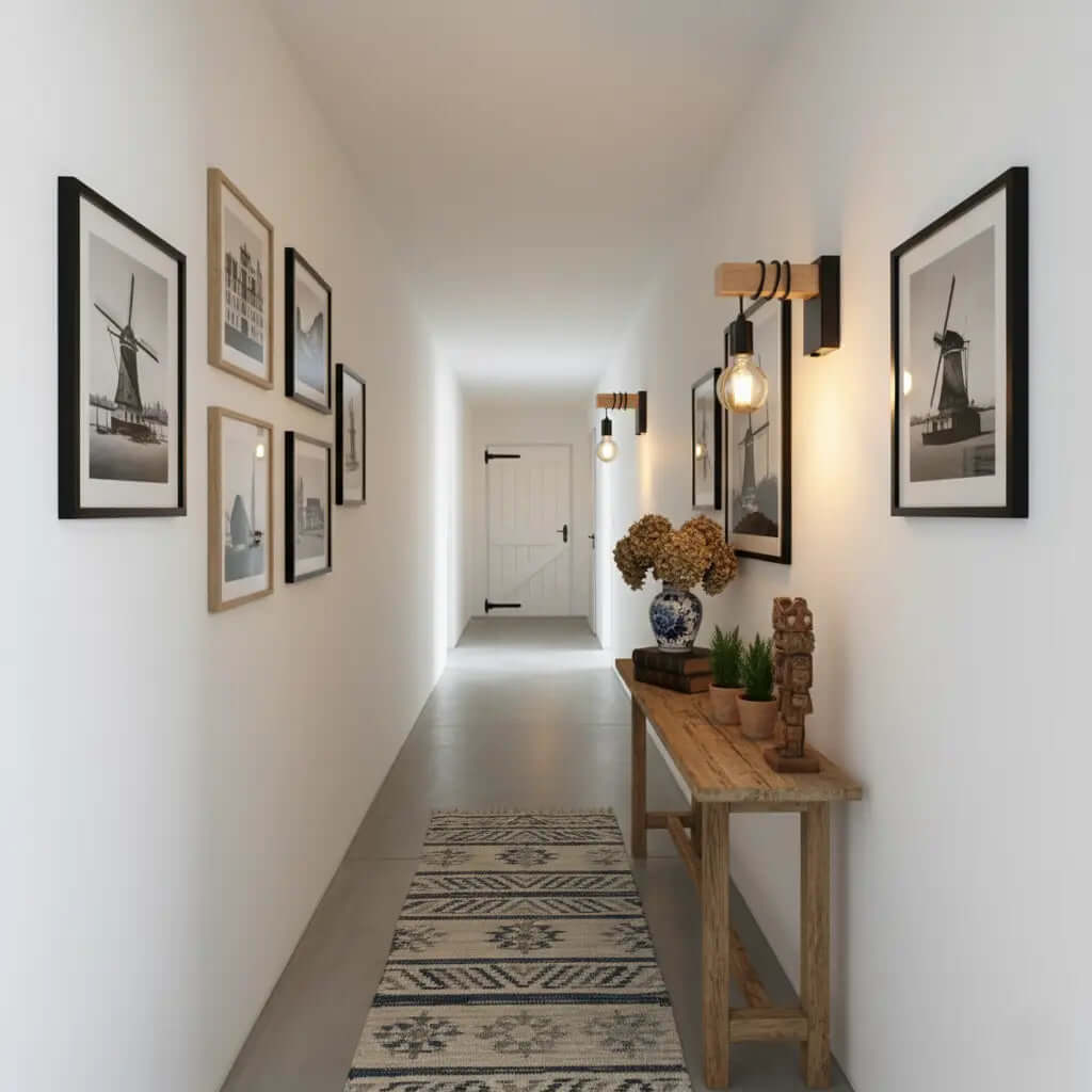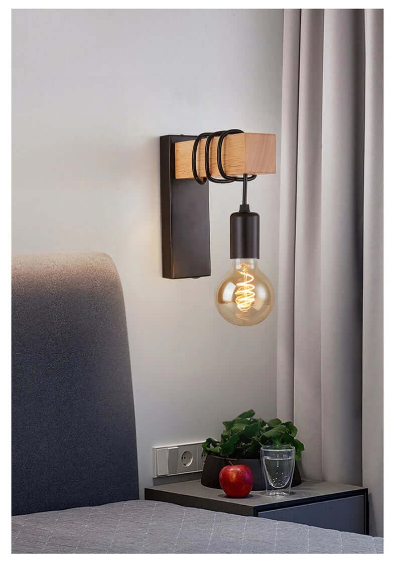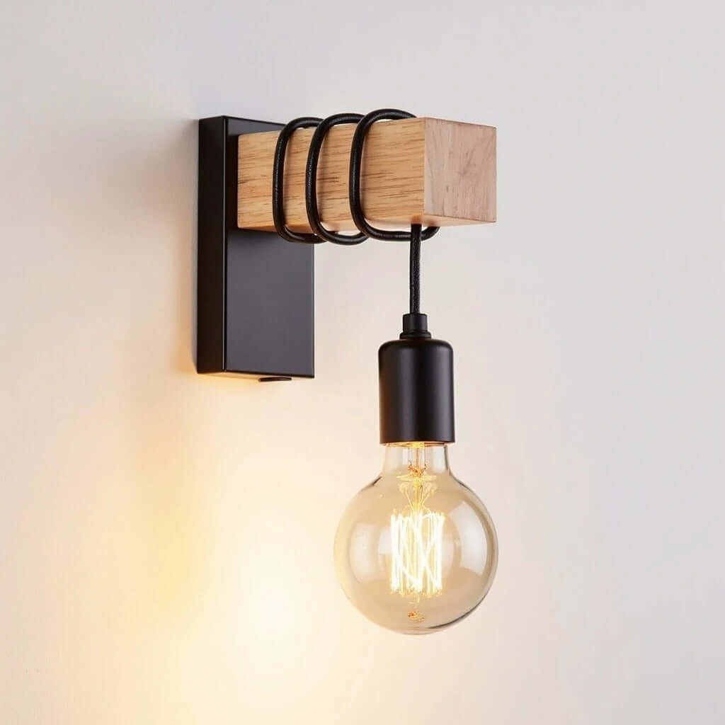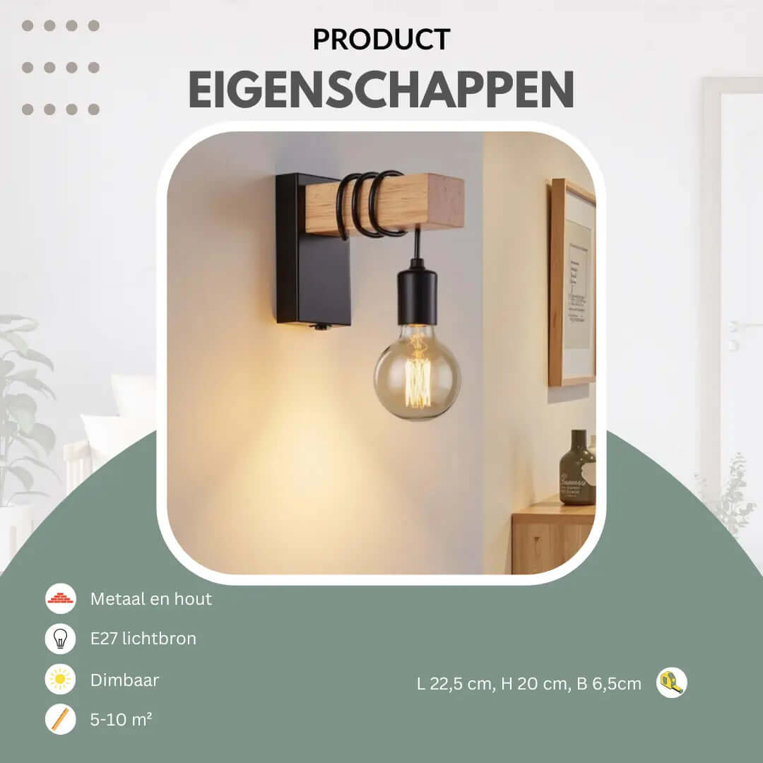 Verder komt deze mooie wandlamp ook tot zijn recht in de hal of gang. De industriele wandlamp heeft een metalen body met een houten carrosserie.